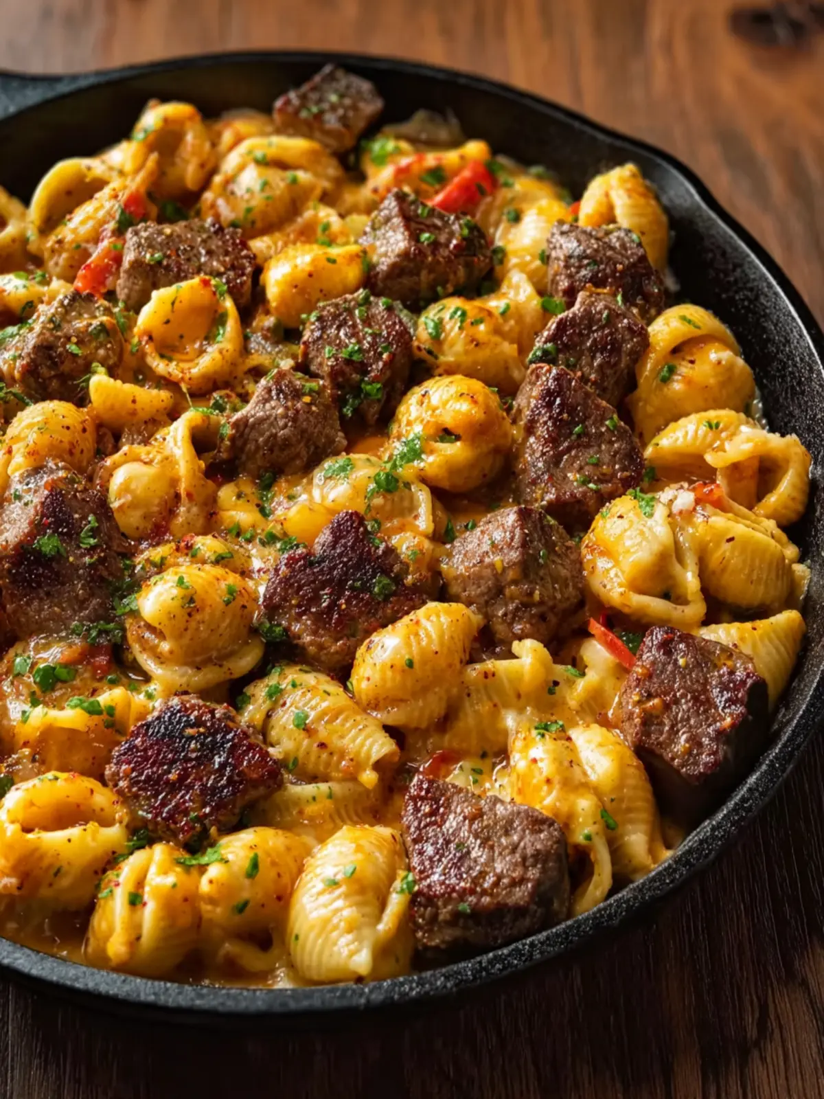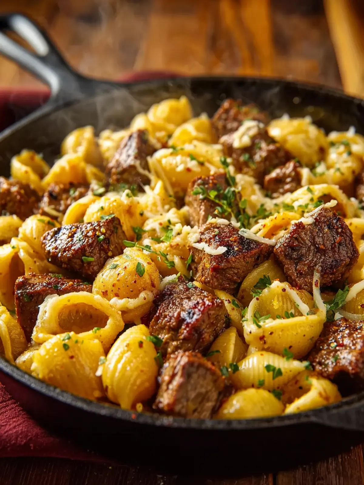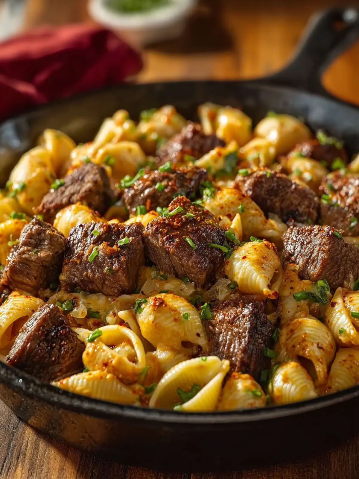 Finish with Fresh Herbs: A sprinkle of fresh parsley or green onions not only adds color but also brightens the rich flavors of your Cajun Steak Bites and Cheesy Garlic Shells Skillet.