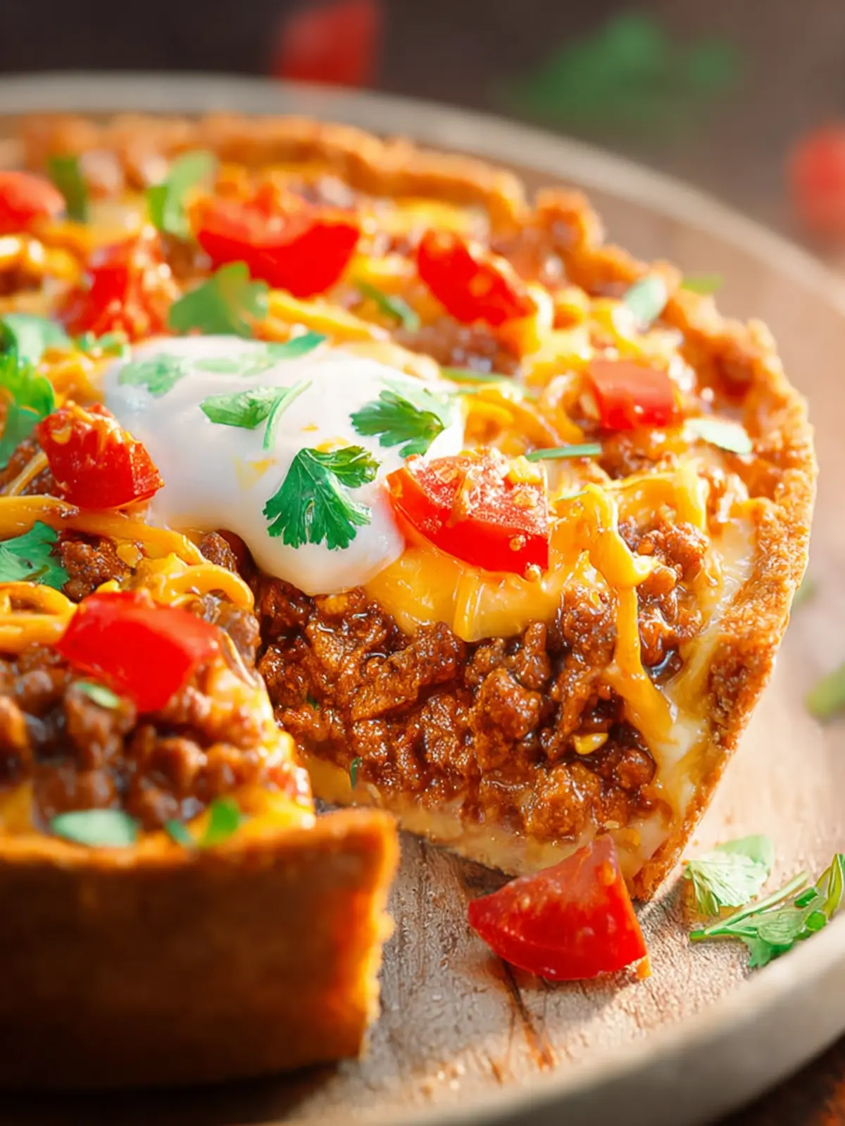 Toppings Galore: Top your cheesy beef taco pie with sour cream, fresh cilantro, diced avocados, or slices of jalapeños for a kick. Each bite becomes a canvas for your culinary creativity.