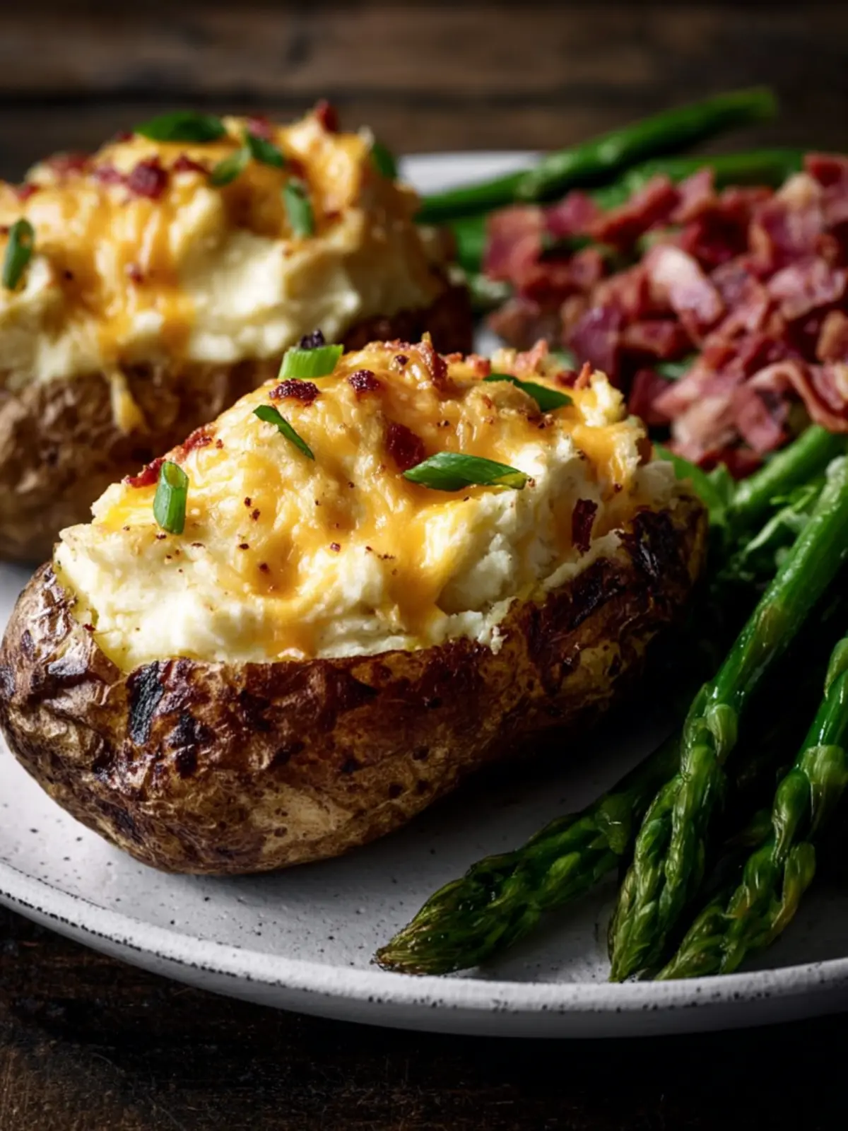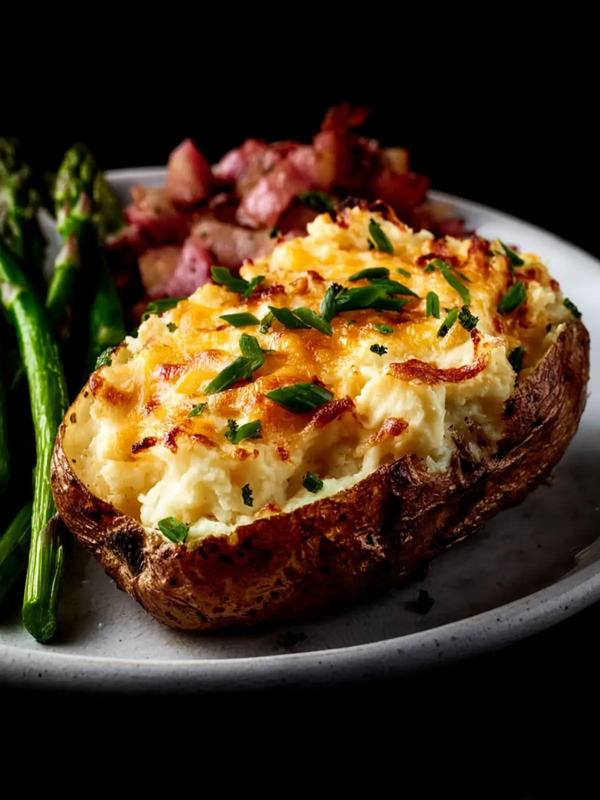 These twice-baked cheddar potatoes are creamy, cheesy, and loaded with flavor. Perfect as a side dish or a comforting main course!
