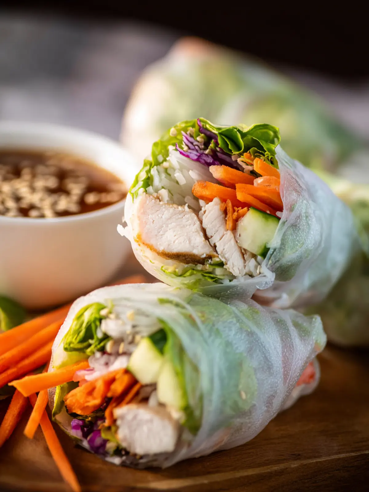 Fresh Ingredients: These rolls are all about embracing fresh ingredients, typically featuring lean chicken breast, crisp vegetables like carrots and bell peppers, and fragrant herbs. This ensures that every bite is not just tasty but also nutritious.