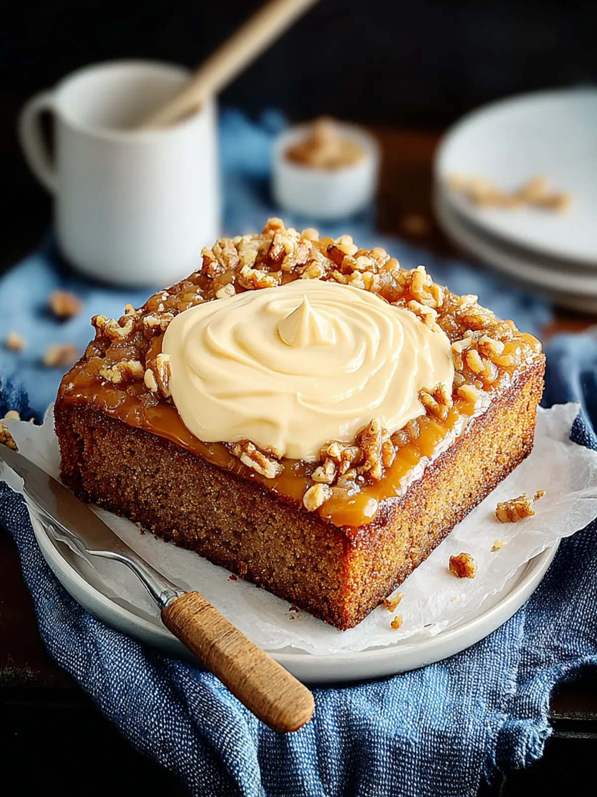 Garnish with Nuts: Tossing some toasted walnuts or pecans on top of the cake will add a delightful crunch and nutty flavor balance.
