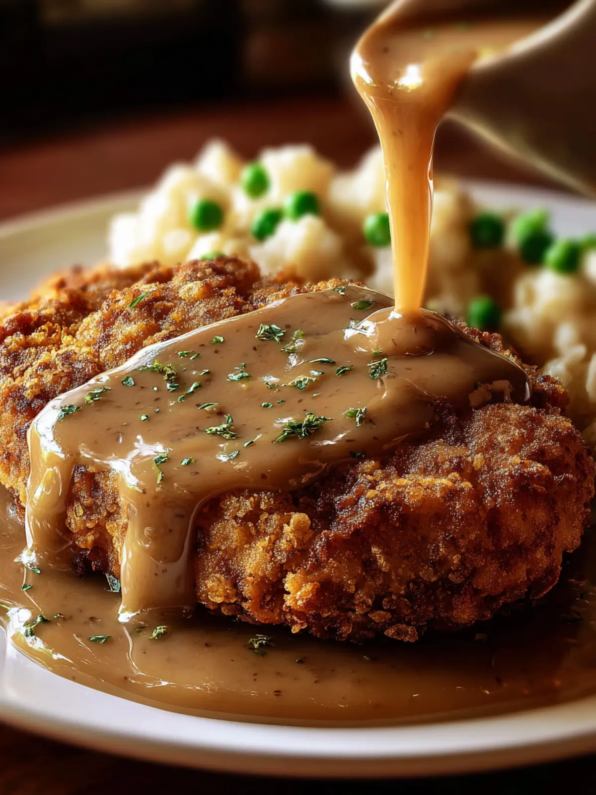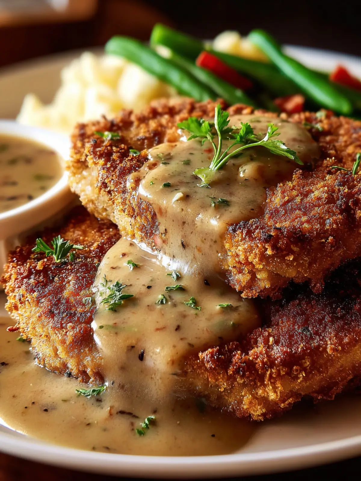 • Serve your chicken-fried steak on a rustic plate, drizzled generously with gravy, and garnished with freshly chopped parsley for a pop of color.