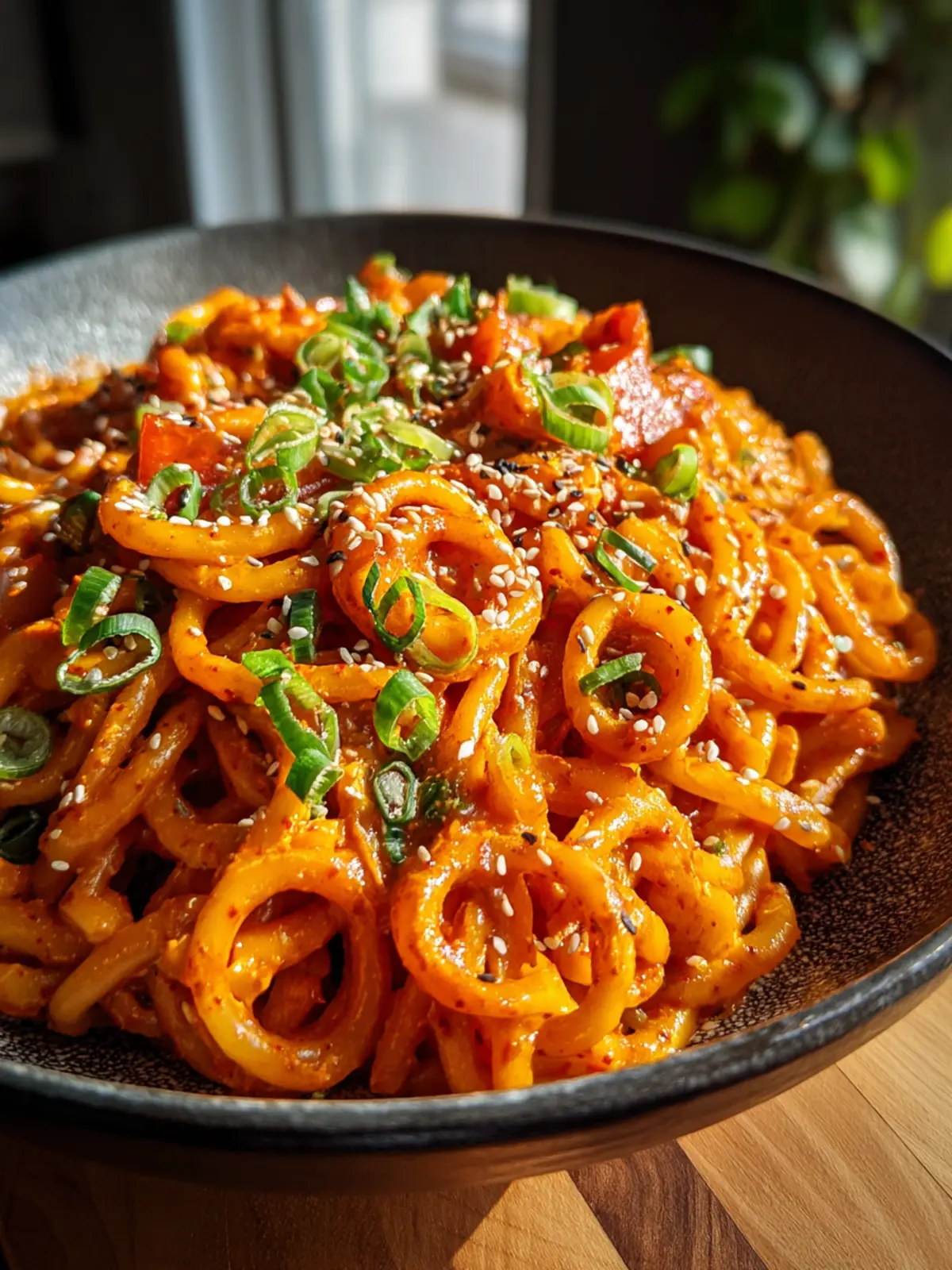 The combination of creamy sauce with gochujang—a Korean chili paste—is a game-changer. It brings the perfect balance of heat and umami that elevates your plain pasta to gourmet status. Plus, with ingredients you probably already have in your kitchen, this dish is as convenient as it is delicious.