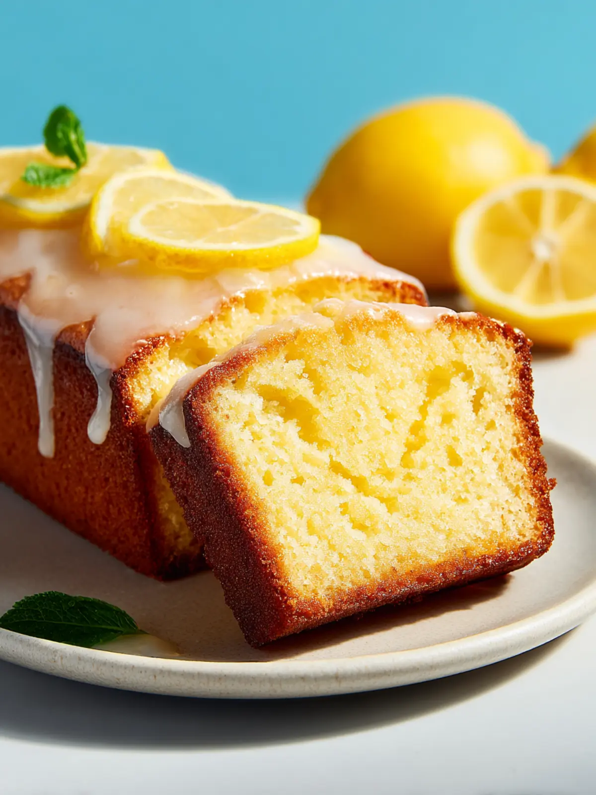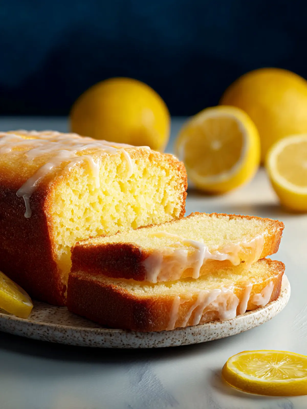 A moist lemon loaf cake with a zesty flavor, perfect for any occasion.