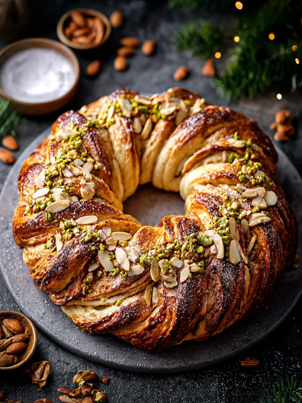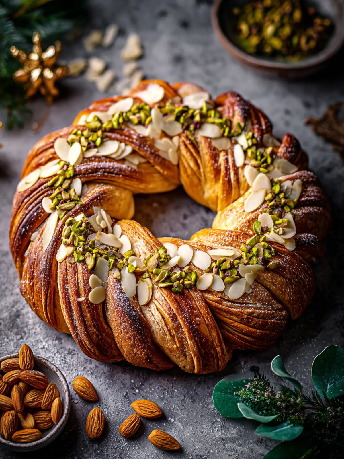 This delicious wreath is made with pistachios and almonds, offering a delightful twist to your baking routine.