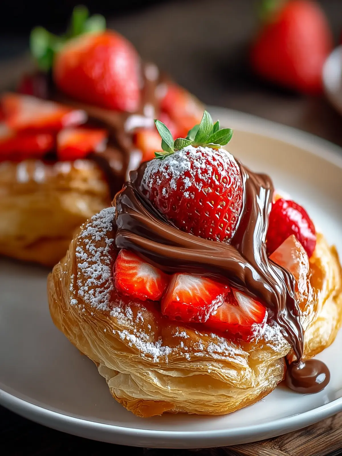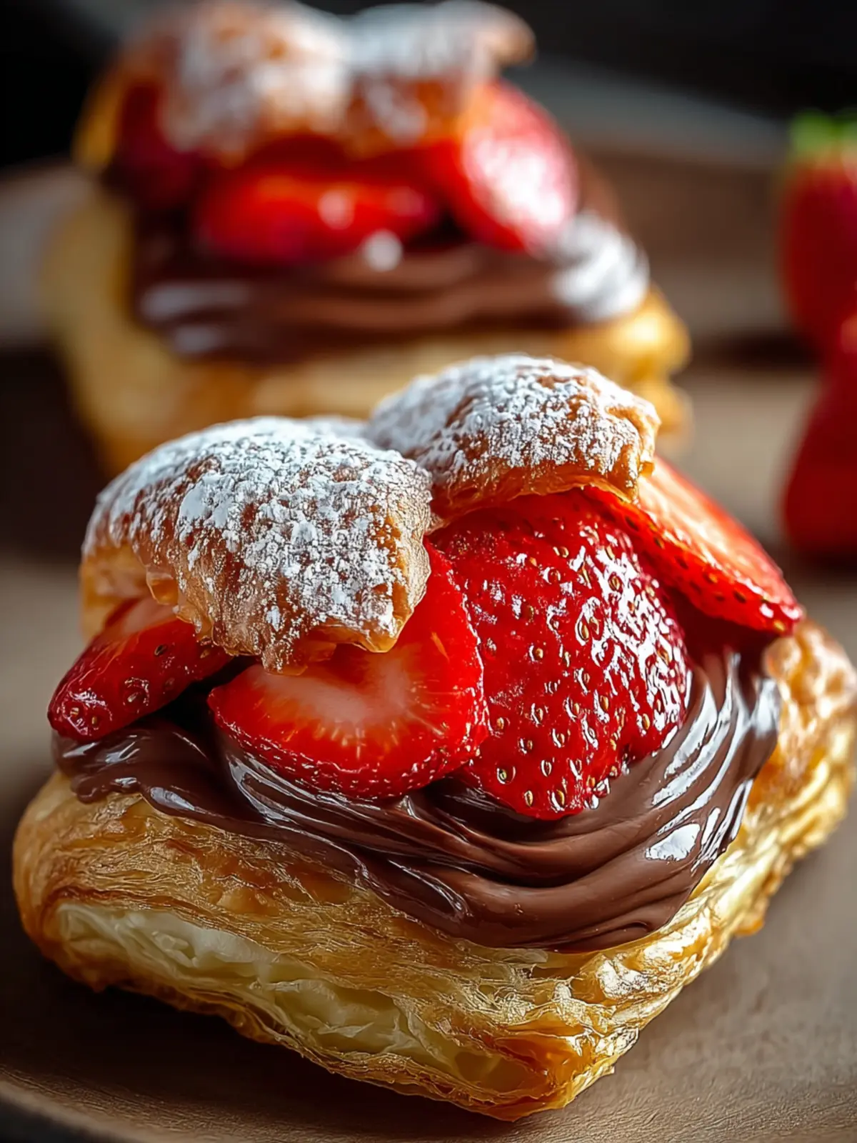 Delicious puff pastry filled with Nutella and fresh strawberries, perfect for a sweet treat.