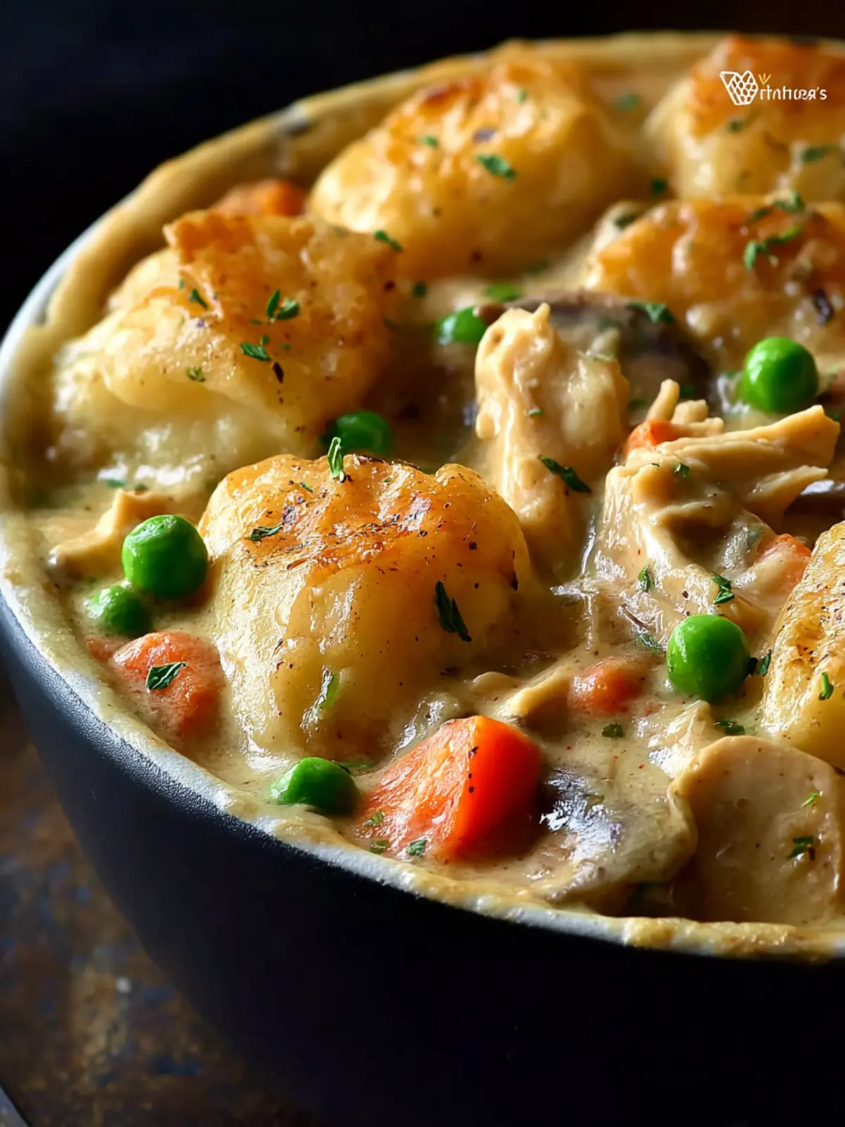 • Vegetables: A medley of diced carrots, celery, and peas not only adds color but also that fresh crunch and sweetness essential to a classic chicken pot pie.