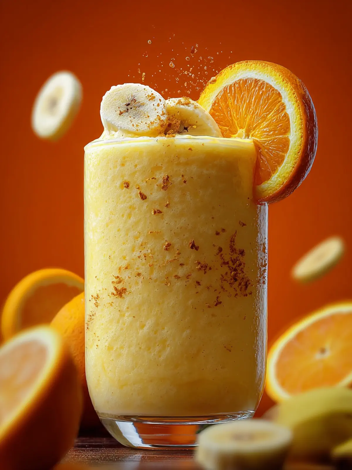 A refreshing smoothie made with ripe bananas and fresh oranges.