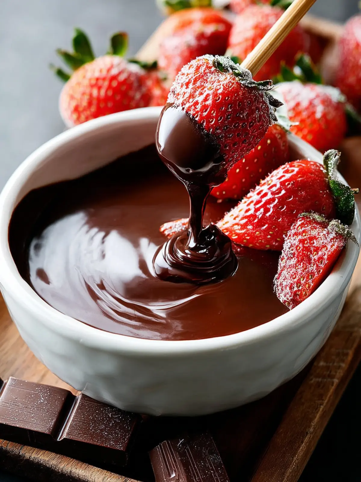 Pinch of salt: A pinch of salt does wonders by balancing out the sweetness. It elevates the chocolate flavor, making each dip extraordinarily delicious.