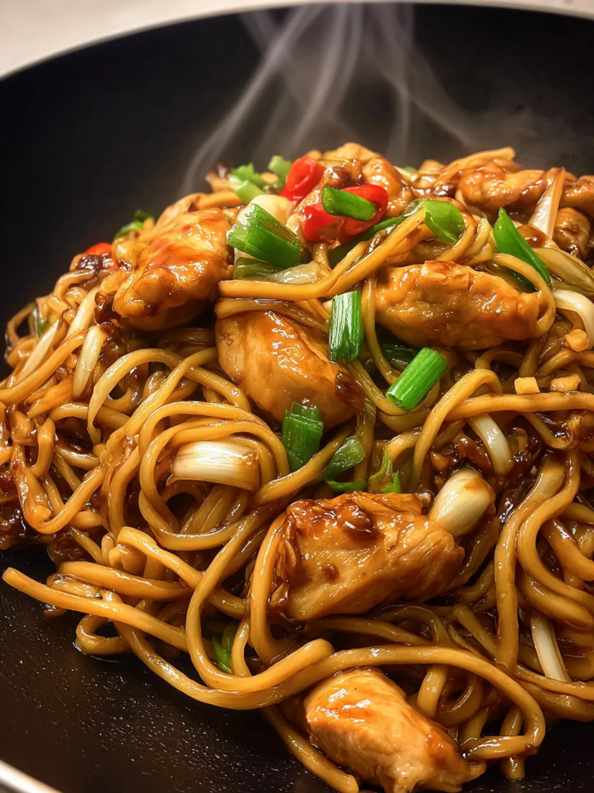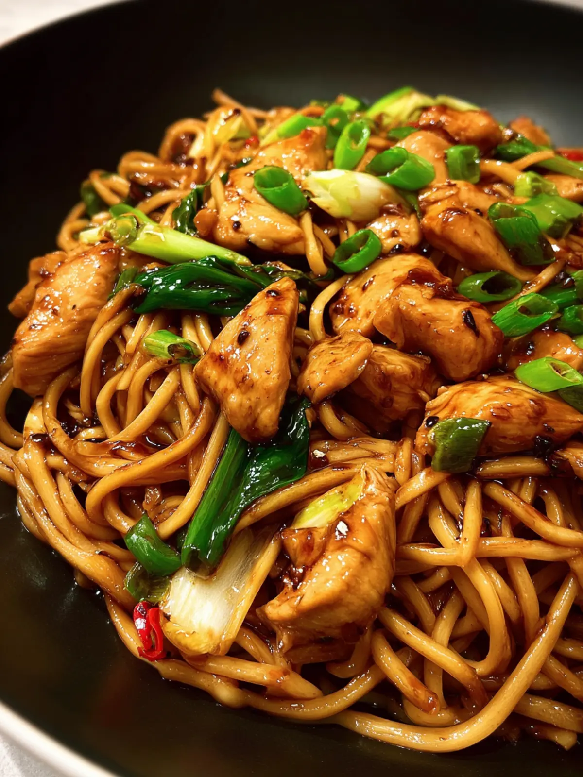 The real magic happens in the combination of sauces and spices. Soy sauce, honey, and garlic unite to create a sticky glaze that coats each strand of noodle in a delightful richness. That first bite? Pure bliss. You’ll find yourself savoring each mouthful, relishing the balance of sweet and savory.