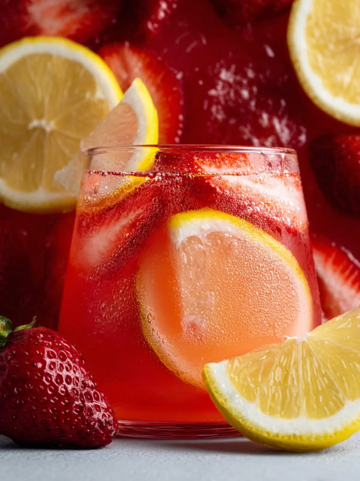 Berry Garnish: Scatter fresh strawberries and lemon slices on top of each glass. Not only does this enhance the visual appeal, but it also infuses the drink with even more fruity goodness.