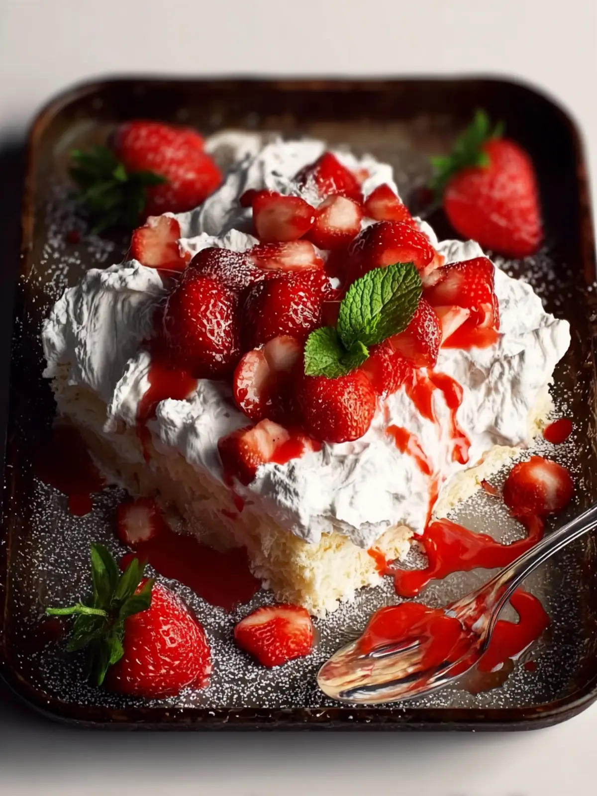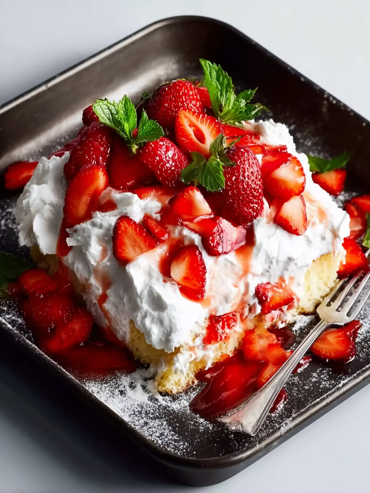There’s something decadent about each forkful, as it practically melts in your mouth. The combination of evaporated milk, sweetened condensed milk, and heavy cream creates a lush, velvety experience that’s hard to resist. Add to this an airy whipped cream topping and fresh strawberries, and you have an irresistible treat!